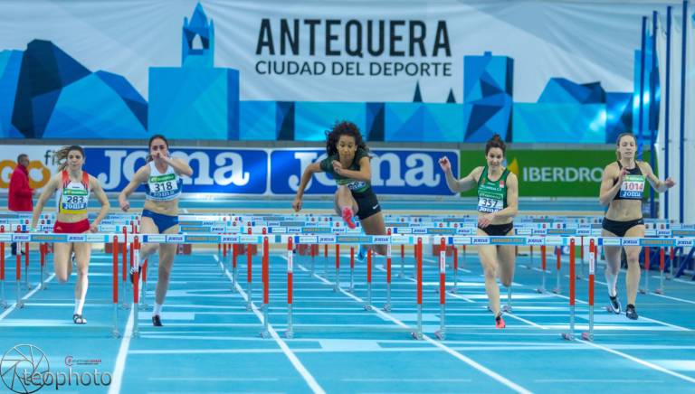 Mira amunt i creu que el moment clau arribarà en breus. Mans a la cintura, peus en posició d’atac i els braços en tensió. Sortida amb explosió i força, arrancada rapidíssima, com si fos una aeronau. Salt potent, amb seguretat i empenta. La càmera gairebé no la segueix, només es veu avançar i superar els obstacles presents al davant. Arriba i mira al costat dret. Somriu. Només fa pocs minuts que el Campionat ha començat. El primer rècord ja ha caigut.