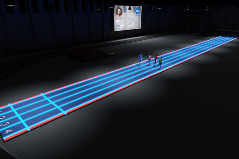 Al mateix temps, la pista tindria uns sensors dels moviment que conjuntament amb càmeres, donarien dades biomecàniques precises en temps real de com estan corrent els atletes: llargada de la gambada, velocitat, acceleració, força…tot això amb una presentació de les dades a l’espectador que suposaran una experiència similar a la que es donen en esports com la Fòrmula-1 o el futbol.